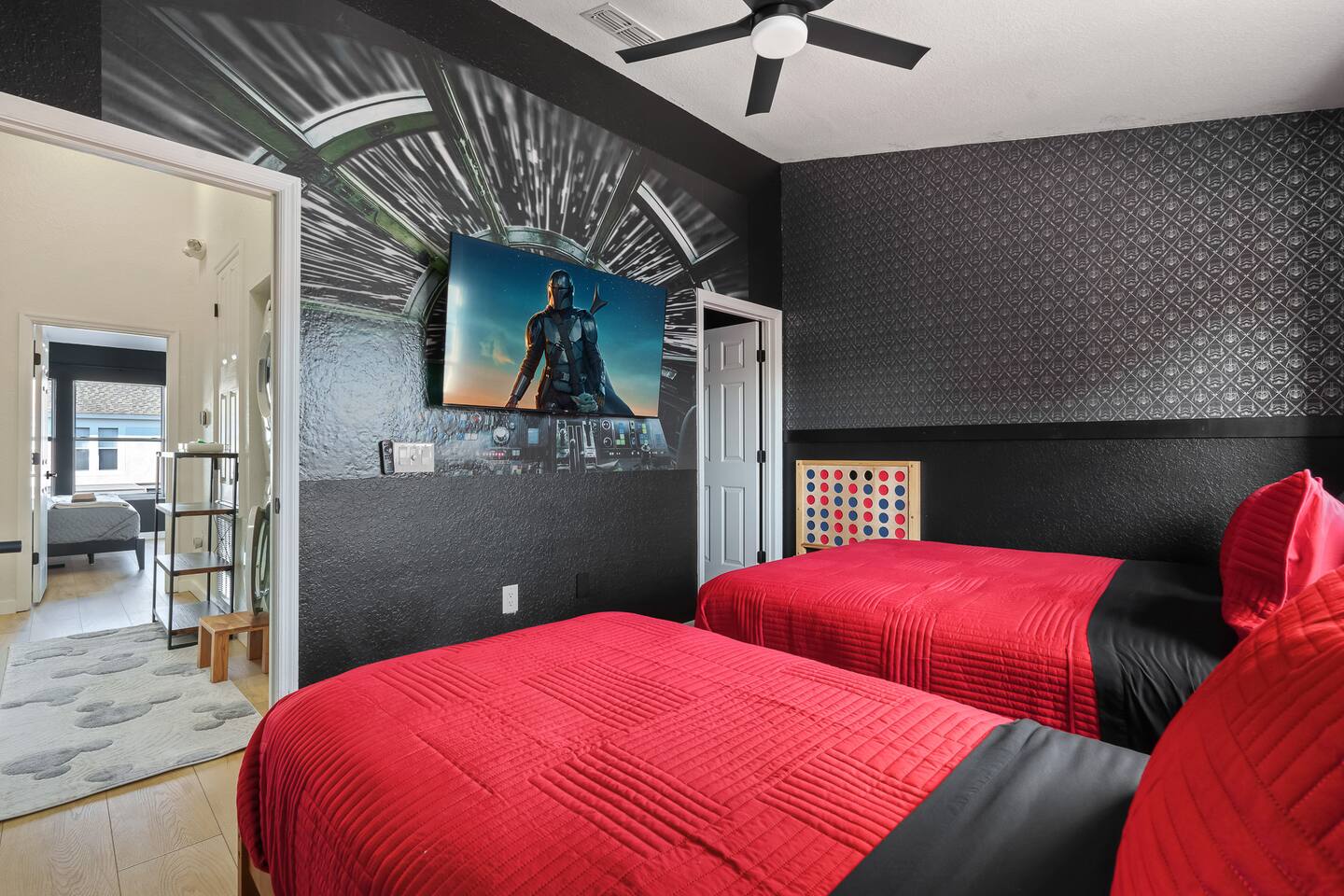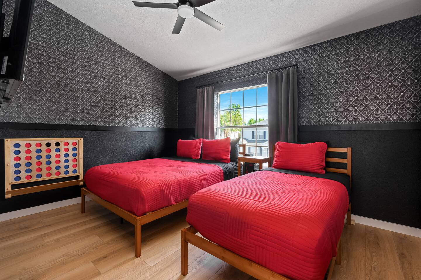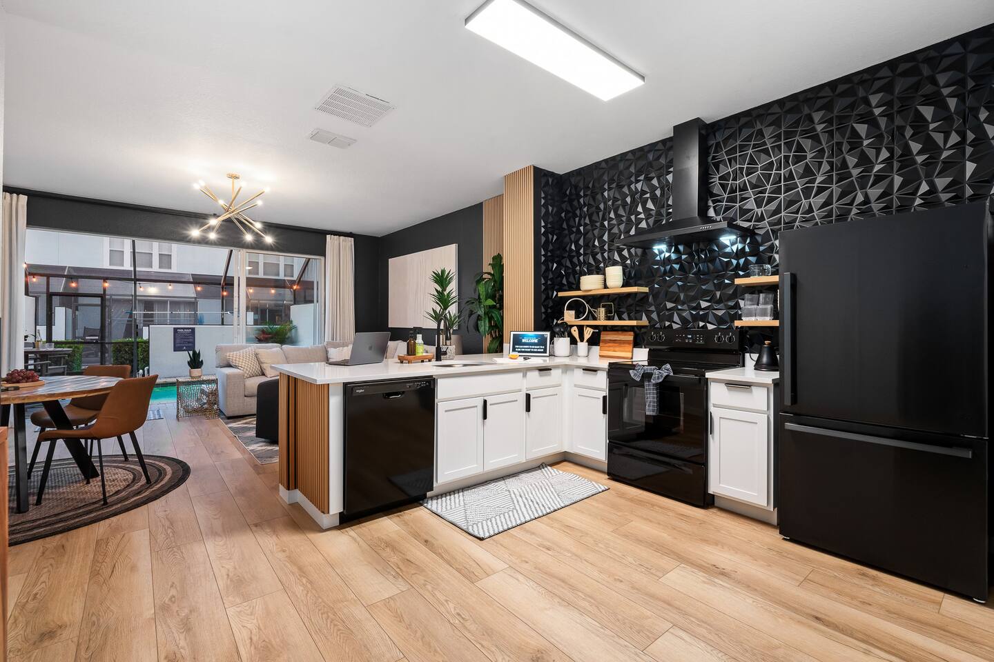 - Animal Kingdom 4 mi - Magic Kingdom 8 mi - Epcot and Hwood 5 mi - main flr king bed - upstairs king bed - upstairs queen & twin bed - Private Heated Pool: Pool heat is seasonal from Dec-Mar - prvt pool and com pool will both be heated to 85°, if you desire something warmer, there is a hot tub at the com pool - all new furniture&linens - Free water park - short walk from house - community pool, hot tub, pay to play arcade, playground, ping pong, pool table, theater, gym, pickleball & basketball