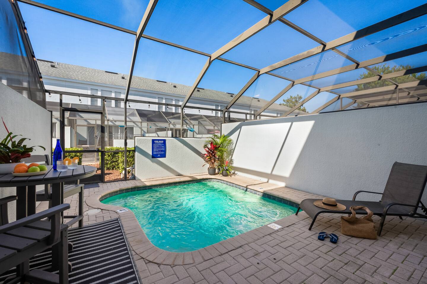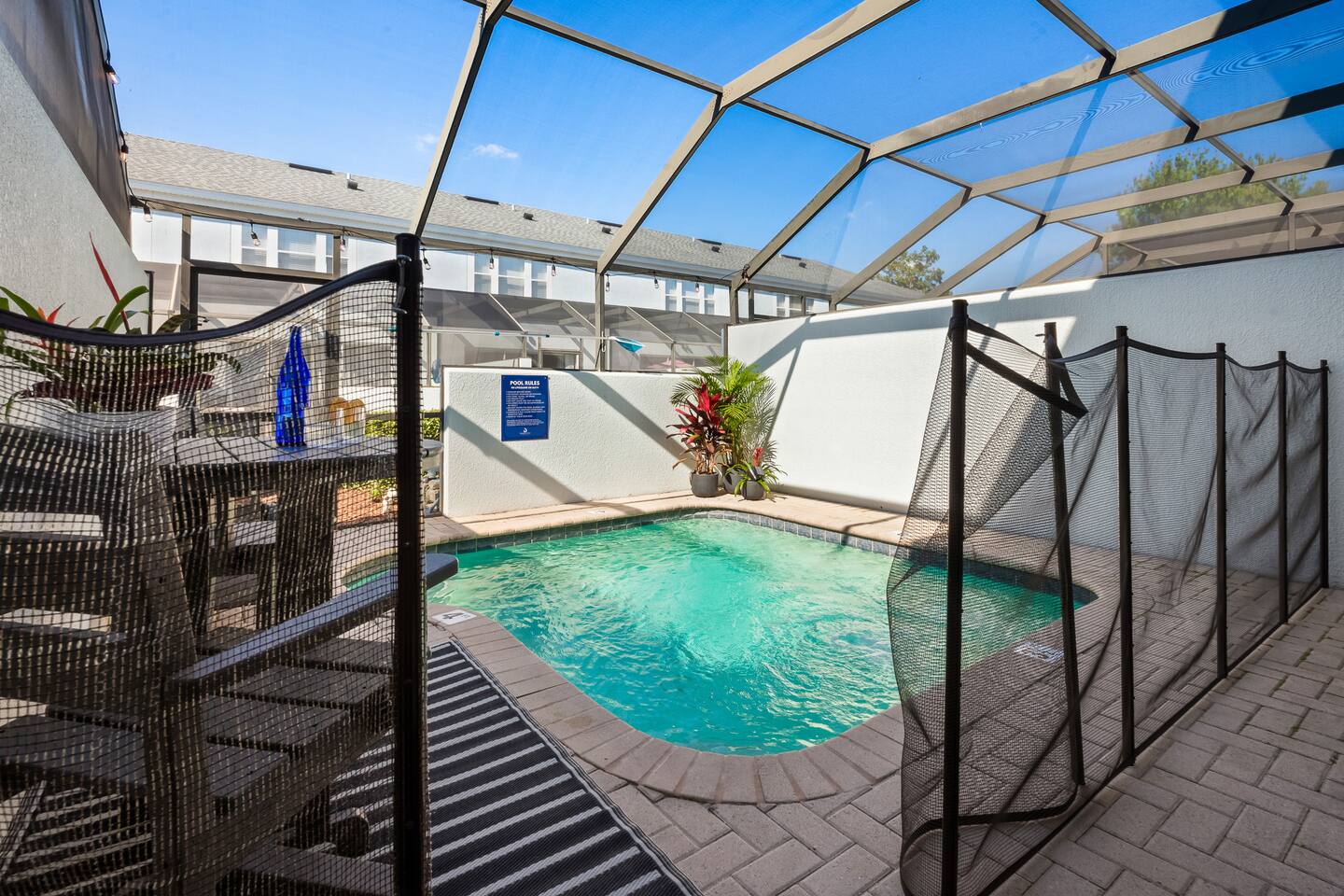 Pool at the house will be heated to 85 degrees complimentary. $1000 fine if guests touches exterior pool equipment so please contact host if you have any issues. The pool manager has a camera directly on the exterior pool equipment for guest safety. The camera can not see the screened in pool area, only the equipment